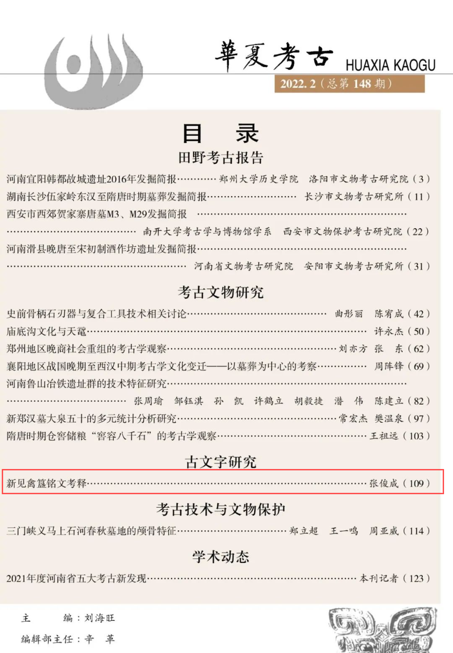 大乐透 张俊成副教授在《华夏考古》(CSSCI扩展版来源期刊)发表了《新见禽簋铭文考释》一文。