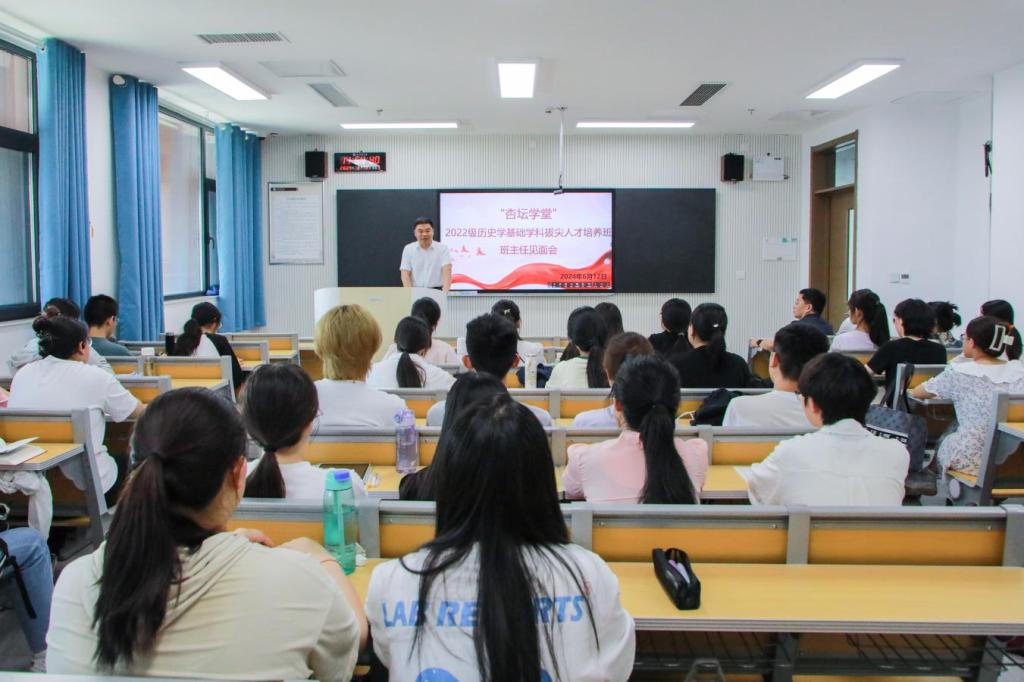 6月12日,大乐透 “杏坛学堂”历史学基础学科拔尖人才培养班班主任见面会举行,学校党委书记邢光作为杏坛学堂”历史学基础学科拔尖人才2022级培养班班主任与拔尖班学生开展师生交流活动。学校教务处处长李傅山、大乐透 党委书记姜开勇、党委副书记王建阳参加了会议。见面会由学院副院长王京传主持。