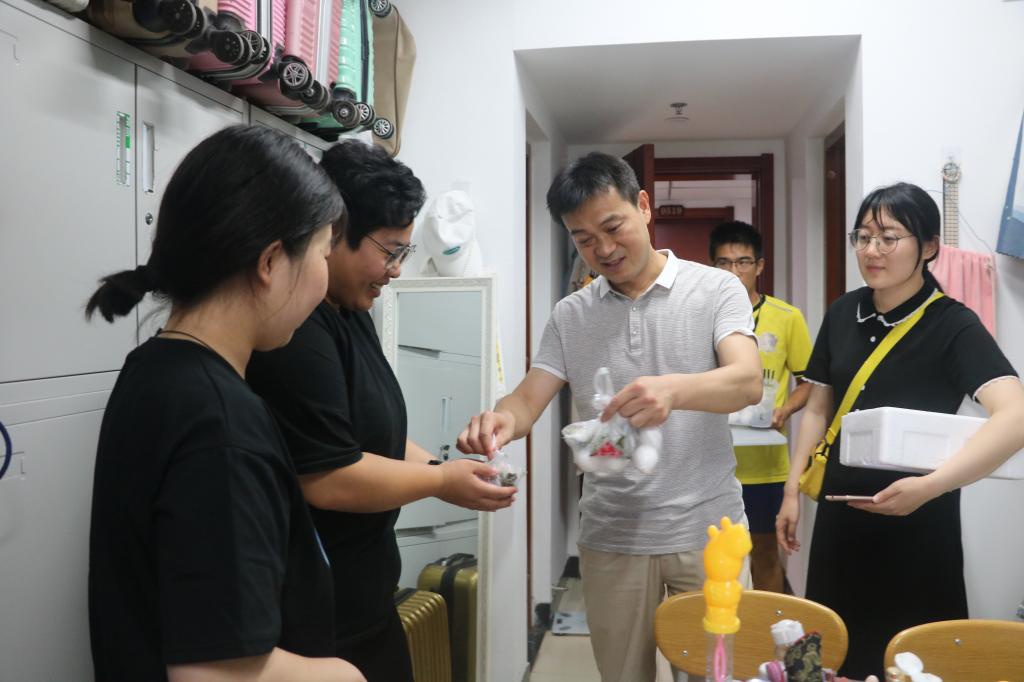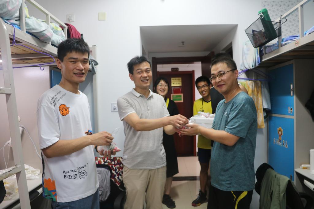 6月14日上午,时值端午佳节,大乐透 研究生辅导员孙锋老师与研究生会同学走访慰问了部分研究生宿舍,代表学院为同学们送上了节日祝福和热乎乎的鸡蛋粽子。