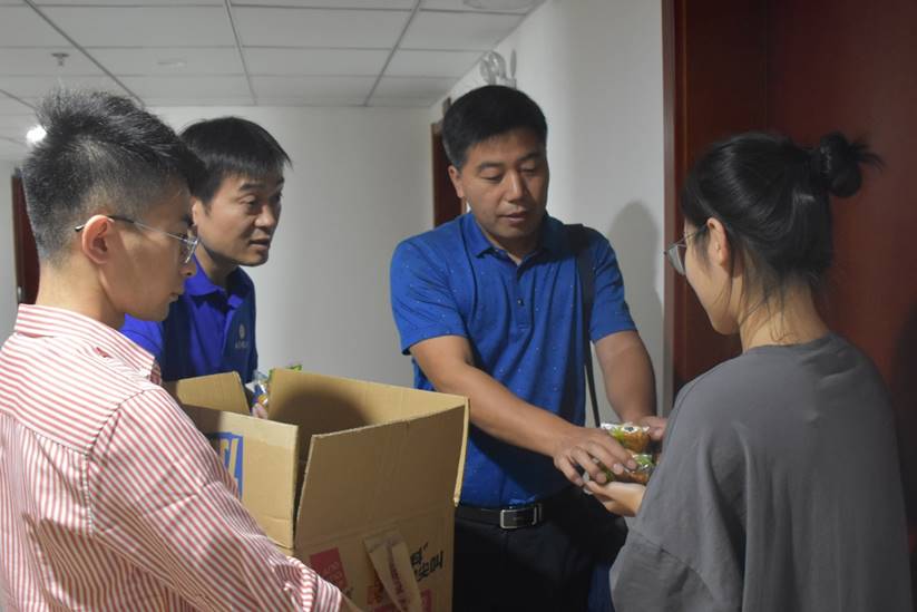 午休时间,学院为同学们送上了提前准备好的中秋月饼,老师们奔走于各研究生公寓前,同留校学生进行了亲切交谈并送上节日祝福。老师们代表学院向大家送上了“中秋节快乐”、“国庆节快乐”的节日祝福,一同分享节日的喜悦,并且热情询问留校学生情况,为同学们发放一袋袋沉甸甸的月饼,一传一送之间,传递的不仅是月饼,还有学院对学生的关怀与热情。