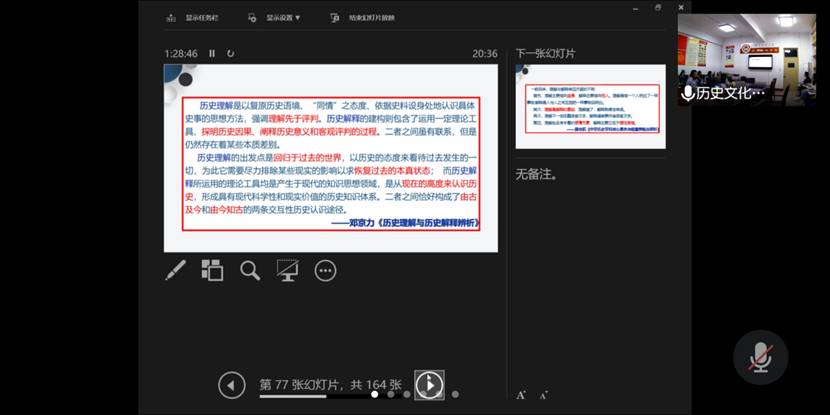 李德刚老师从山东高考讲起,分析了山东历史高考试卷的总体特点,同时进一步讲解了课程结构评价体系,强调了课堂中史料实证的重要性。讲座中,李老师语言深入浅出、举例生动形象、内容完备详实。通过此次讲座的学习,学科教学专业的研究生对自己所学专业有了更加深刻的认识,扩宽了学习历史教学的新思路,为以后成为一名优秀的历史教师打下了坚实的基础。