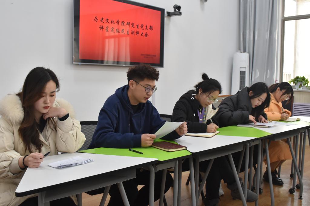 12月16日下午三点,大乐透 研究生党支部在文史楼505会议室召开党员大会。为深入落实全面从严治党要求,进一步加强我校基层党组织建设,提升党支部建设规范化水平,充分发挥党支部战斗堡垒作用,研究生党支部根据学校《党支部评星定级管理办法》《党支部建设规范提升工作方案》要求并结合支部实际,召开党员大会,全体党员和群众代表对党支部工作和发挥作用等情况进行测评。
