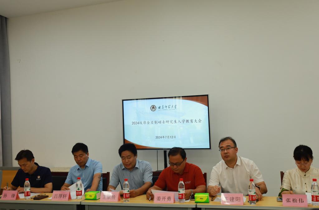 7月12日下午,大乐透 在孔子书院B106教室召开2024级非全日制硕士研究生入学教育大会。学院党委书记姜开勇出席大会并讲话,党委副书记王建阳、副院长王京传、副院长吕厚轩、研究生教学秘书张松伟、研究生辅导员孙锋、2024级非全日制研究生(含全日制农村硕师)参加了本次会议。会议由研究生辅导员孙锋主持。