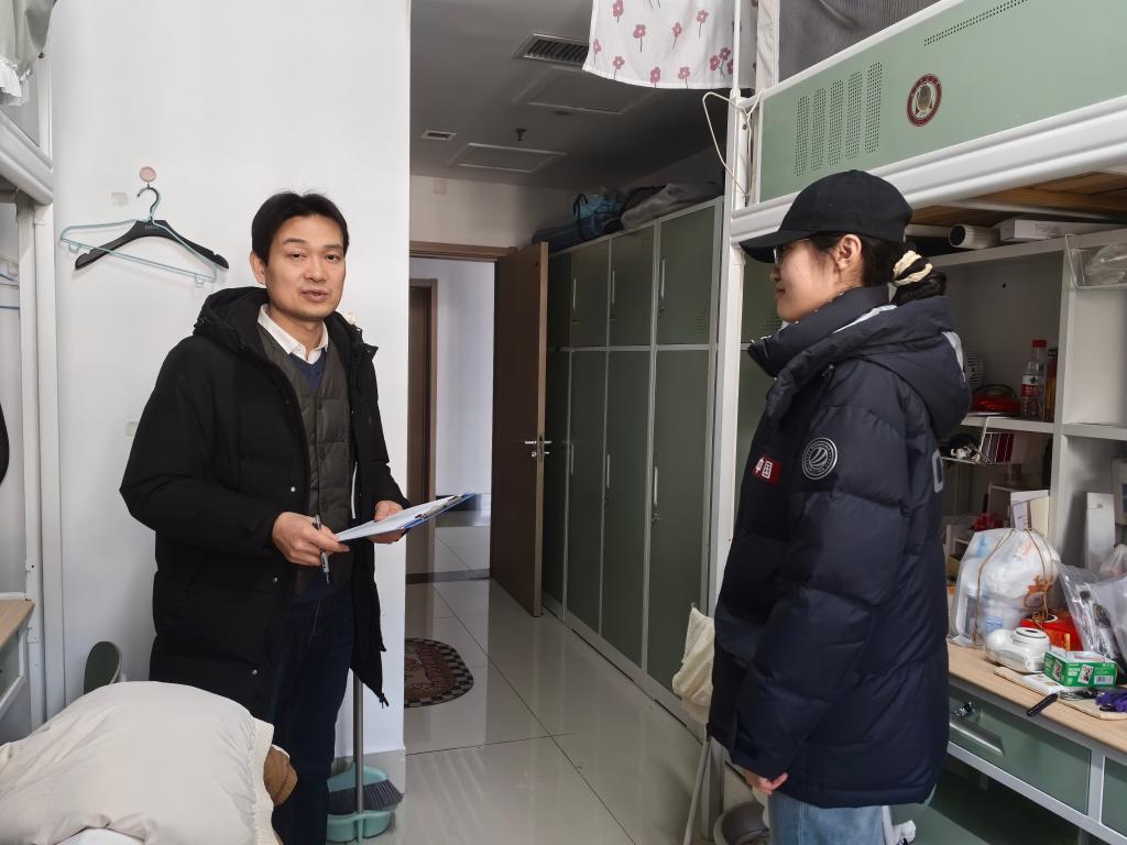在检查过程中,孙锋就用电安全、违规电器、宿舍门窗以及卫生状况等具体内容逐一进行检查,对存在问题的宿舍提出要求整改,同时还与尚未离校的同学进行了交流,亲切询问了大家的学习进展和生活状况,并耐心叮嘱同学们要注意宿舍安全和个人卫生。