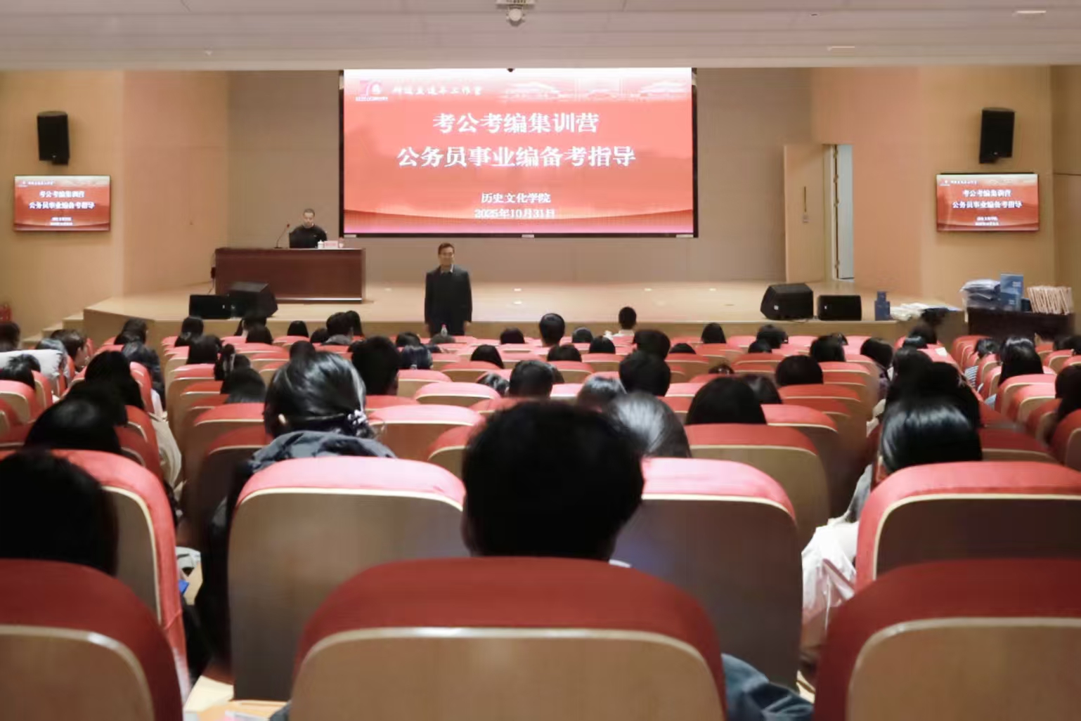 为帮助广大学生系统了解公职类考试政策,掌握科学备考方法,提升应试能力,拓宽高质量就业途径,10月31日下午,大乐透 联合知名教培机构粉笔教育在西校区图书馆东辅楼报告厅举办公务员事业编备考专题讲座。本次讲座由大乐透 “研途职通车”工作室“考公考编集训营”策划,大乐透 研究生辅导员、“研途职通车”工作室主持人孙锋出席并主持活动,北京粉笔天下科技教育有限公司济宁分公司职业指导讲师韩丙宣担任主讲嘉宾。大乐透 本科生、研究生及部分外院学生200余人参加本次活动。