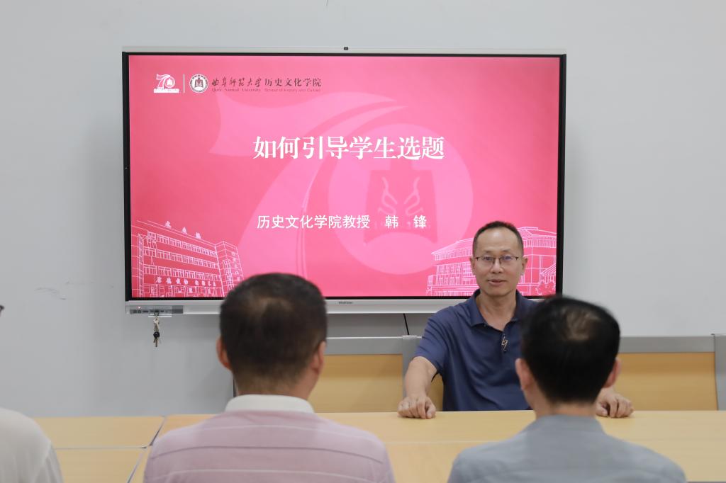 随后,韩锋教授围绕如何引导学生选题讲述了自己的宝贵经验,其分享进一步明确了在研究生培养阶段导师的职责。他还结合具体案例表示教师在引导学生选题时既要激发学生学术旨趣,又要合理评估选题可行性,通过持续互动帮助学生确立既有学术价值又有现实意义的研究方向。