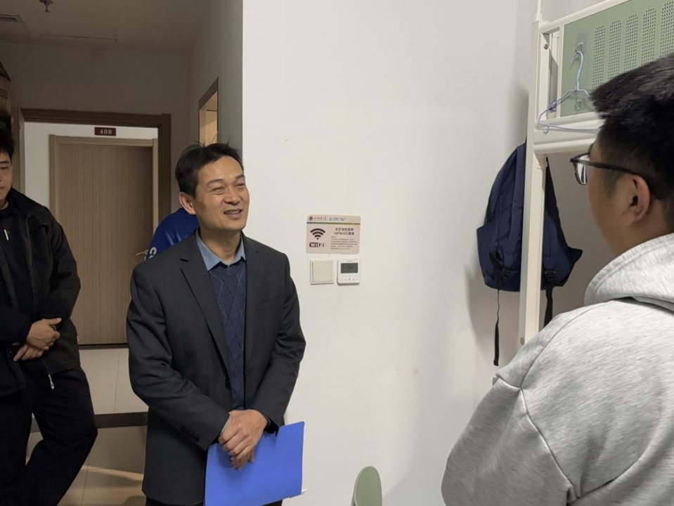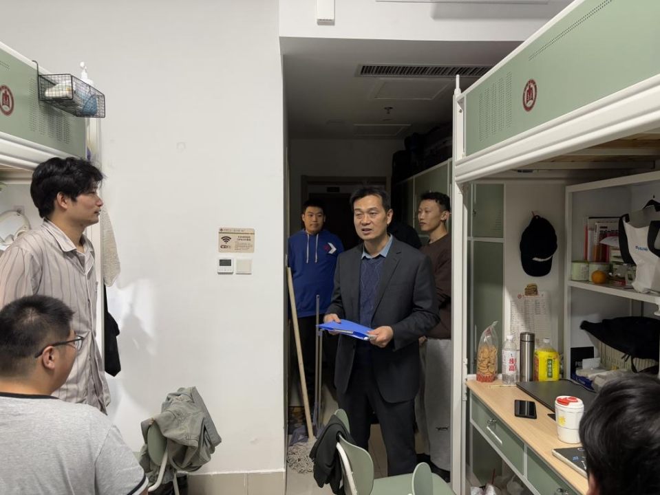 为切实加强学生宿舍的安全与卫生管理,消除各类安全隐患,营造一个安全、整洁、文明、和谐的居住环境,2025年11月12—13日下午,研究生辅导员孙锋带领研究生会同学深入学生宿舍,对西区八号楼大乐透 研究生宿舍进行了全面、细致的安全大检查。