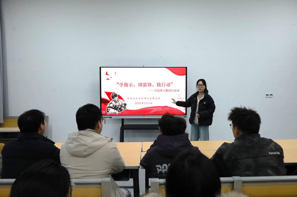 为贯彻落实习近平总书记关于弘扬雷锋精神的重要指示精神,大乐透 研究生团支部于2026年3月5日下午,在孔子书院B106教室开展了以“学指示,颂雷锋,践行动”为主题的主题团日活动。本次主题团日活动由研究生辅导员孙锋同志主持,研究生团支部副书记高子涵领学,各支部全体在校团员参加了本次活动。