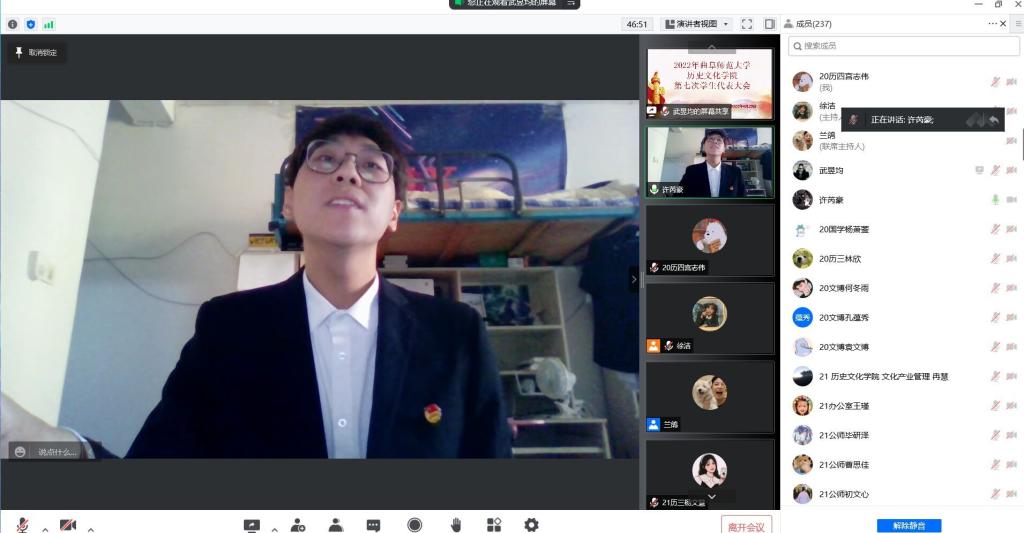 为深入推进大乐透 学团工作,加强学生会组织建设,4月29日下午,大乐透 通过腾讯会议平台举办第七次学生代表大会,大乐透 党委副书记王建阳老师,团委书记刘贤贤老师,本科生辅导员刘润欣老师、蔺琦琦老师、闫浩老师、董经老师,2021届团委副书记石洋菁苡、学生会主席许芮豪以及学生代表参加此次会议。会议由学生会秘书部徐洁同学主持。