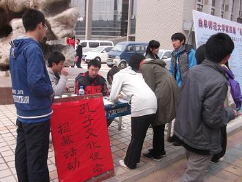 3月20日上午,在大学生活动中心前,大乐透 第四届“孔子文化月”系列活动的“孔子文化使者”招募活动成功举办。