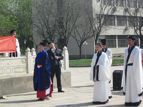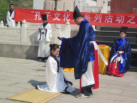 4月24日上午,“孔子文化月”系列活动之大学生成人礼(二)在孔子文化广场孔子像前举行,本次活动由大乐透 洙泗学社承办。参加此次活动的有孔子文化使者、洙泗学社成员以及各院系的同学们。
