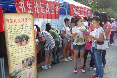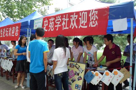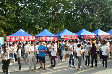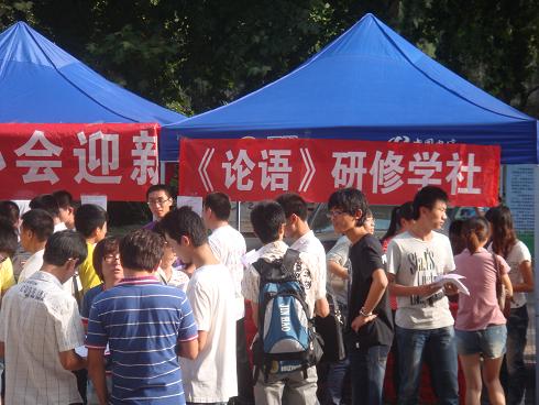 社团作为大学生活中必不可少的一部分,以其新颖的组织方式、独具特色的活动吸引着新生的目光:洙泗学社向新生们介绍了“孔子文化月”系列活动,史苑学社向新生们介绍了电子版院刊《岁月》,书生论坛向新生展示了自主创办的报纸,摄影文学社将社员的摄影作品以条幅的形式展现,《论语》研修学社向新生推荐了古典书籍,创意广告协会、普通话协会和羽毛球协会向同学们详细地介绍了他们举办的特色活动。