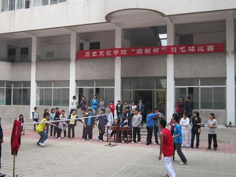 为欢迎2011级新生的到来,10月22日和25、26日下午,大乐透 羽毛球协会举办的“迎新杯”羽毛球比赛在文史楼羽毛球场地和行政楼东侧羽毛球场地顺利举行。