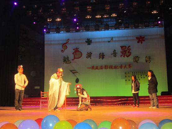 经过初赛和复赛的激烈角逐,最终共有9支队伍进入决赛。本次大赛为了更加公正公开,增加了大众评委打分环节。选手展示共分两个环节,超级配音和才艺展示。在第一环节中,各组选手依次为自选影片配音,影片多为大家熟悉喜爱的影视作品。有的队伍对台词有所改变,内容新颖独特。在第二环节才艺展示中,选手们更是各显神通,既有深情款款的情歌对唱,又有诙谐幽默的小品相声;既有古典优雅的器乐表演,又有热情火辣的现代舞蹈。为大家带来了一场绝无仅有的视听盛宴。