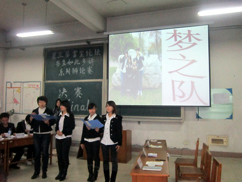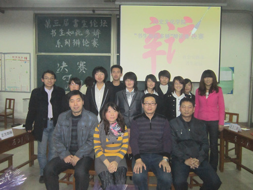 11月26日晚,由大乐透 团总支、学生会主办,学生会实践部、书生论坛办承办的第三届“书生如此多娇”系列辩论赛决赛在综合楼103落下帷幕。大乐透 李春玲老师、吕厚轩老师、韩锋老师、刘伟老师、学生会主席周宇、秘书长王倩倩担任此次大赛的评委。
