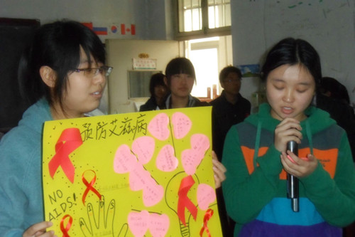 本次“世界艾滋病日”系列活动主要包括四个方面的内容:以“艾滋病”为主题的电影赏析,标识标语设计大赛,“艾滋病”预防与保护知识竞赛以及“世界艾滋病日”校内、校外的宣传活动。11月12日,在文史楼302播放了以“与艾滋病抗争”为主题的电影《最爱》。通过对电影的赏析,同学们了解到艾滋病的相关知识,从而给予他们更多的关爱;11月20日,“艾滋病”预防与保护知识竞赛决赛在老干部楼205顺利举行。曲阜市疾病预防和控制中心孔立、张清胜医师,大乐透 孟凡礼老师,团总支副书记刘芊,校社团联合会副部长辛璐应邀担任此次比赛的评委。比赛过程中,视频播放、展板制作等环节,现场气氛活跃,充分展现了选手们各自的风采;11月28日,经过评委的仔细斟酌,综合版面设计、蕴含的意义、创新等方面评选出了此次“艾滋病”标志标语设计大赛的优秀作品。