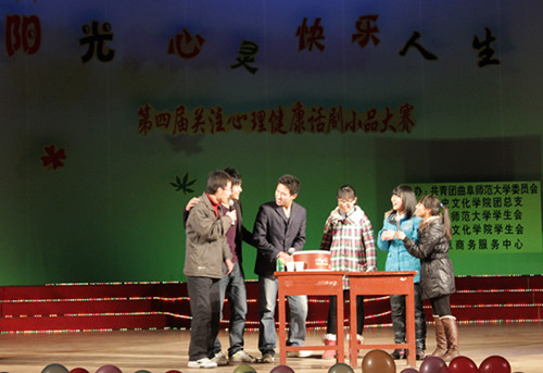 12月11日晚,第四届关注心理健康话剧小品大赛在新大学生活动中心礼堂拉开帷幕。本次活动由共青团大乐透 委员会、大乐透 团总支联合主办,校学生会及大乐透 学生会共同承办。教育科学学院副院长唐爱民、党委学生工作部教育科科长毛永正、文学院老师袁梅、大乐透 党总支副书记尹明法及韩锋、吕厚轩、李春玲老师应邀担任此次大赛评委。