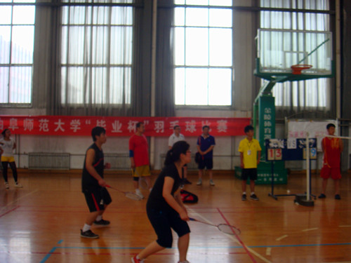 5月26日,2012年“毕业杯”羽毛球赛在西操场体育馆内如期举行,本次比赛由我校体育运动委员会、大乐透 团总支主办,羽毛球协会承办,吸引了来自全校各院系的教师、研究生及本科生共同组成的11支队伍参加。
