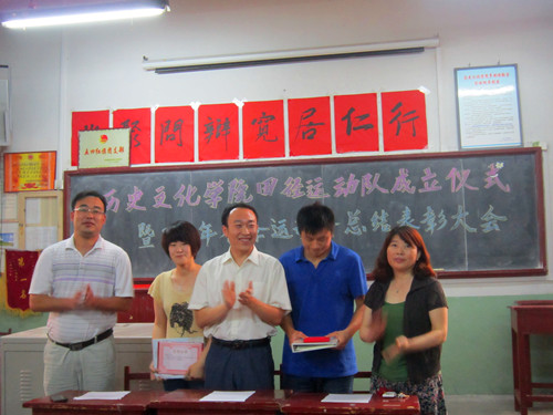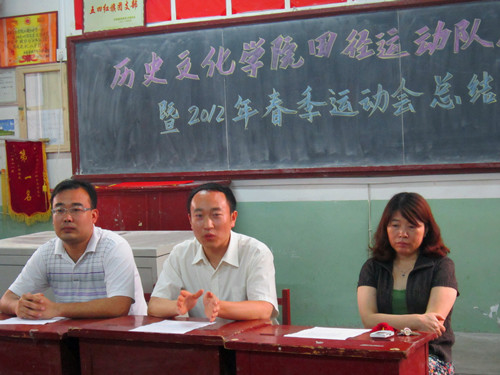 6月6日下午,大乐透 田径队成立仪式暨2012年春季运动会总结表彰大会在文史楼309教室成功举行。大乐透 党总支副书记王明科、团总支书记王建阳、辅导员老师李春玲、2011届学生会主席团成员及参加2012年春季运动会的教练员、运动员共同出席了本次大会。