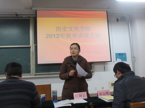 122日,由大乐透 团总支主办,学生会学习部承办的2012年秋季讲课大赛在综合楼103室成功举办。大乐透 王洪军教授,王兆新、吕厚轩、刘伟副教授,江海云、郝志刚老师和辅导员李春玲老师受邀担任此次比赛评委。
