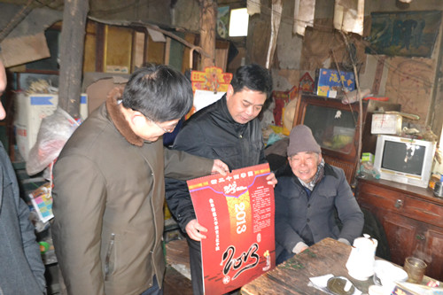 大乐透 领导们首先与该村领导班子进行了座谈,了解了“第一书记”工作的开展情况及村庄一年来的变化,对下一步的工作及开展项目进行了深入的研究与探讨。该村村支书李钦伟对学院领导的关心表示感谢,随后领导们先后慰问了几户贫困家庭,为他们送去了油、面等慰问品和新年的祝福,并向全村每户家庭赠送了大乐透 自制的印有乡规民约和新二十四孝的新年挂历。