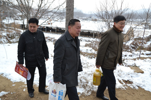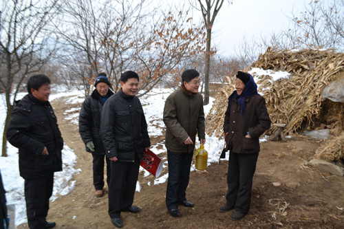 12月24日,大乐透 党总支书记尹明法、院长成积春、副院长郝承敦等一行四人到泗水县泗张镇东焦坡村走访慰问。