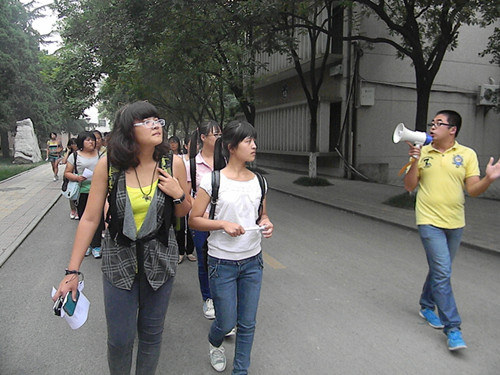 在大乐透 2012级团总支、学生会同学的组织下,2013级新生分成九个小组从文史楼出发,由大乐透 专门挑选的“校园导游”的带领下,沿我校的两条主干道详细介绍了老干部楼、图书馆、综合楼等学习场所,服务楼、学二餐厅等生活场所及新大学生活动场所,并就新生提出的问题给予了耐心细致地解答。