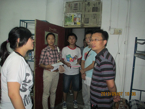 9月7日晚,大乐透 党总支副书记兼2013级辅导员王慕东带领学生会主席团成员到学生宿舍进行慰问。