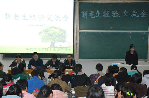 11月6日晚,由大乐透 学生会学习部主办的2013级历史学类专业新老生经验交流会在综合楼101室举行。在专业学习、课外素质拓展等方面表现优异的4名2011级同学作为受邀嘉宾参加了此次新老生经验交流会。