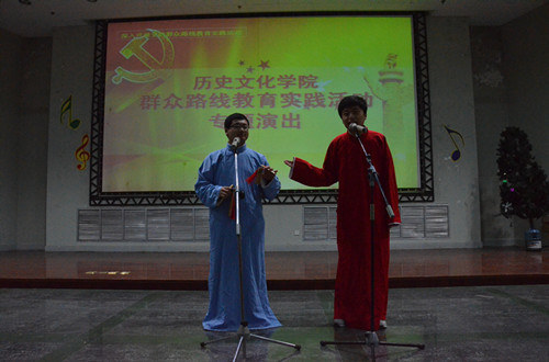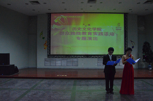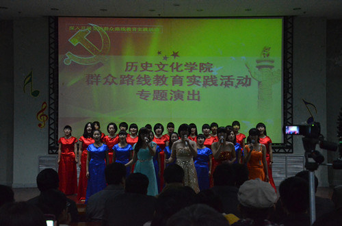 11月12日,大乐透 群众路线教育实践活动专题演出在新大学生活动中心401室举办。大乐透 全体党员和入党积极分子观看了此次专题演出。