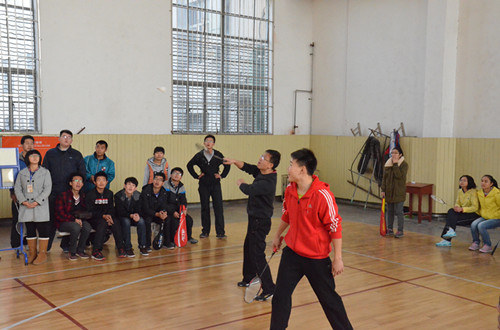 11月16日上午,由我校体育运动委员会和大乐透 团总支主办,羽毛球协会承办的大乐透 2013年“迎新杯”羽毛球比赛在体育科学学院体育馆拉开帷幕。校团委副书记张明洁、大乐透 党总支副书记王慕东、校体育教研部江华老师、教师教育学院何文广老师、大乐透 刘合波老师应邀出席了开幕式,开幕式由大乐透 团总支书记王建阳主持。