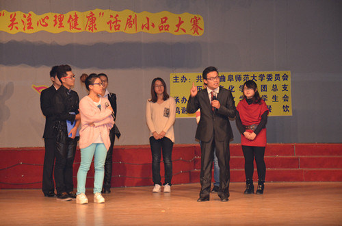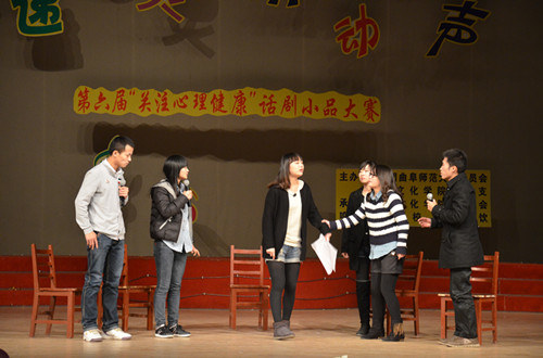 12月1日晚,由校团委和大乐透 团总支主办、大乐透 学生会承办的第六届“关注心理健康”话剧小品大赛决赛在大学生活动中心礼堂举办。文学院副院长李钧、学生工作处大学生心理健康教育中心主任苗洪霞、教师教育学院孙传波老师、大乐透 党总支副书记王慕东、王昌沛老师、王连生老师以及团总支书记王建阳应邀担任此次比赛的评委。