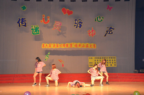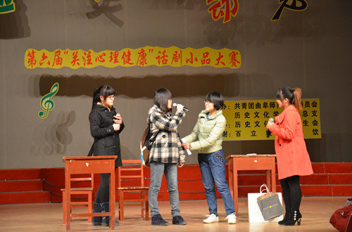 经过初赛、复赛的激烈角逐,来自各学院的六支队伍脱颖而出进入此次决赛。本次参赛作品主题均来自大乐透 心理健康问卷调查。比赛中,选手们针对大学生普遍存在的亲情、友情和爱情等方面的困惑及问题,以新颖的编排方式、逼真到位的演技和饱满的感情演绎了当代大学生的烦恼与快乐、挫折与成长。话剧《谎言的世界》告诉我们有时候在谎言的背后是爱;《千年老二“脱光记”》以轻松搞笑的表演方式讲述了当代大学生对爱情思考及感悟;《转身的幸福》让我们看到了摆脱自卑之后的完美蜕变;《印记》展现了友情的伟大力量;《追风筝的人》让我们坚定了对梦想的追逐。