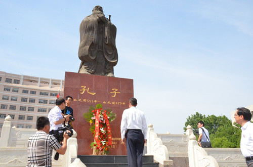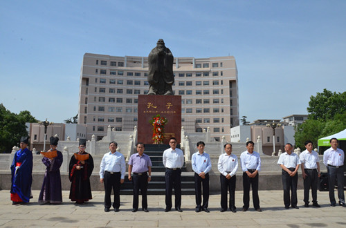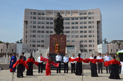 5月23日下午,山东省首家国学院在我校隆重揭牌。孔子第79代嫡长孙、中华大成至圣先师孔子协会会长、我校国学院名誉院长孔垂长先生与山东省教育厅副厅长宋承祥共同为国学院揭牌。揭牌仪式前,孔垂长先生在孔子文化广场向孔子像敬献了花篮并观看了大乐透 的传统文化特色活动——“儒家经典诵读”。