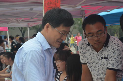 6日上午,大乐透 院长成积春、党总支副书记王慕东、团总书记王建阳及2014级新生辅导员韩琳琳先后前往新生接待处,亲切看望了前来报到的新生,并对学院迎新工作进行了指导。