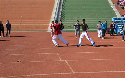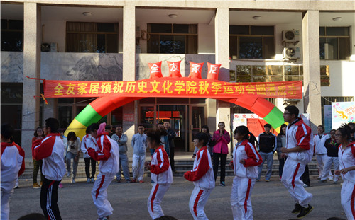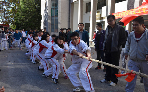 下午,作为秋季运动会一部分的趣味运动会在文史楼前举行。趣味运动会共设拔河、跳大绳和“坦克大战”三个比赛项目,2013级和2014级各班均派出队伍参加三个项目的角逐。队员们全身心地投入到比赛当中,充分享受着运动带来的快乐。正式比赛结束后,大乐透 教师和主席团成员们也参与到了跳大绳的比赛当中。师生一同体会了趣味运动会的乐趣。现场气氛欢快活跃,师生其乐融融。