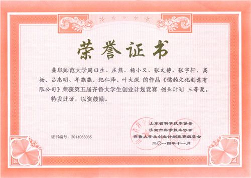 山东省三等奖《儒韵文化创意有限公司》 周曰生、庄熊等