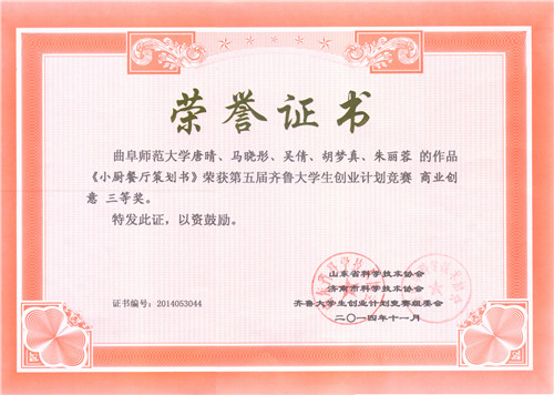 山东省三等奖《小厨餐厅策划书》 唐晴、马晓彤等