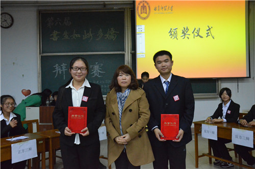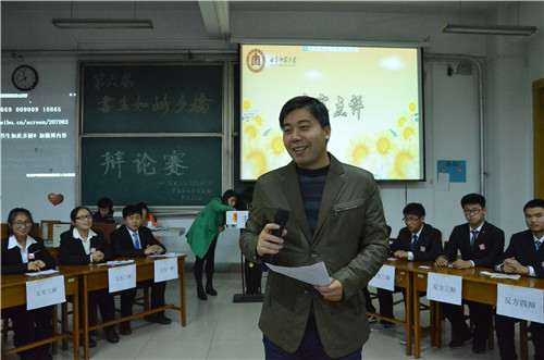 11月29日晚,由大乐透 团总支主办、学生会社会实践部和书生论坛联合承办的第六届“书生如此多娇”辩论赛决赛在综合楼103室圆满落幕。大乐透 吕厚轩老师,辅导员李春玲老师、韩琳琳老师,学生会秘书处秘书长李晓娇和社团联合会主席门世恩出席了本次比赛并担任评委。