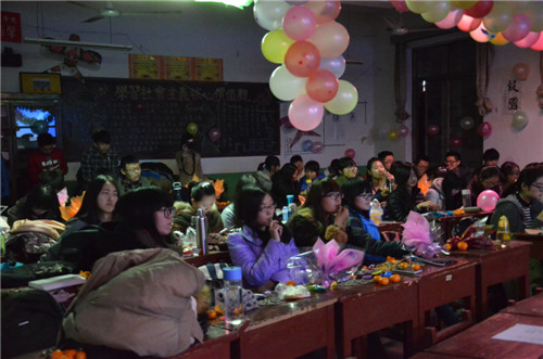 领导老师像往年一样来到各个班级为同学们带去了节日的慰问与祝福,并在同学们的盛情邀请下参与到节目表演中,韩琳琳老师和主席团成员的一曲《至少还有你》将晚会推向了高潮。整场晚会师生同乐,欢声笑语不断,晚会在一片其乐融融的节日气氛中结束。