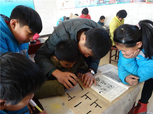 2月4日,以大乐透 学生为主体的支教团队进驻梁山县黑虎庙镇师庄村,开展了为期一周的传统文化教育实践活动,课程安排以孔子“九思”思想为主线,采用志愿者国学授课和大学生村官励志心理辅导相结合的思路。上午以“明礼诚信”的“国学小课堂”教学为载体,讲授传统文化知识和历史典故,带领孩子诵读《弟子规》等国学经典;下午以“温故知新”的学习辅导为主体,巩固已学知识,引导孩子预习新课程。同时开展特色班级活动,如教授孩子写毛笔字、剪纸折纸活动等传统文化课程。