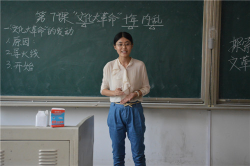 来自大乐透 2012级的部分研究生及部分本科生参加了比赛。比赛过程中,选手们对《开元盛世》、《第二次工业革命》、《开辟新航路》等初高中历史课程进行了详细讲解并灵活运用小黑板、自制模型道具、图表卡片等教具进行辅助教学,形式丰富新颖。最终,秦晋、王继东、张娜、臧振勇四名选手荣获一等奖。赛后,王昌沛、江海云和巩宝平三位老师对参赛选手的教学仪态、语言表达及讲课方式等方面进行了点评并对讲课选题、教具运用等方面提出了意见和建议。