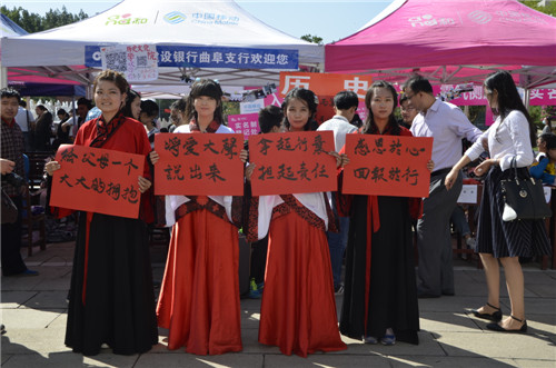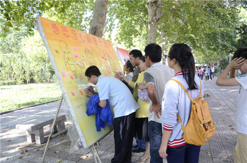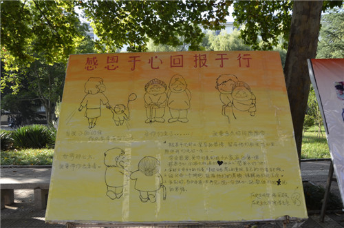 9月12日上午,2015级新生陆续前来报到, 大乐透 在迎新工作中积极推行“接过爸妈手中的行李”、“我的行李我来提”、“给父母一个拥抱”等一系列感恩教育活动。通过制作宣传板、征集感恩话语等多种方式来对感恩教育进行宣传,时刻提醒新生学会感恩、独立承担责任。
