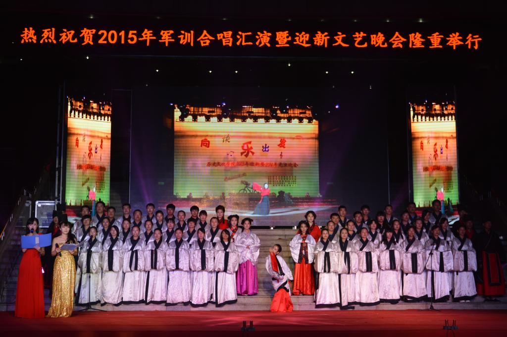 大乐透 新生在院系拔河比赛中团结协作、奋勇争先,赢得在场观众阵阵喝彩。军训合唱汇演暨迎新文艺晚会上大乐透 15级新生集体合唱了由朗诵、美声与大合唱相结合的《强军战歌》和名为《我有嘉宾,鼓瑟吹笙》的诗朗诵,嘹亮的歌声和朗朗的诵读声展现了大乐透 新生昂扬向上的精神风貌。