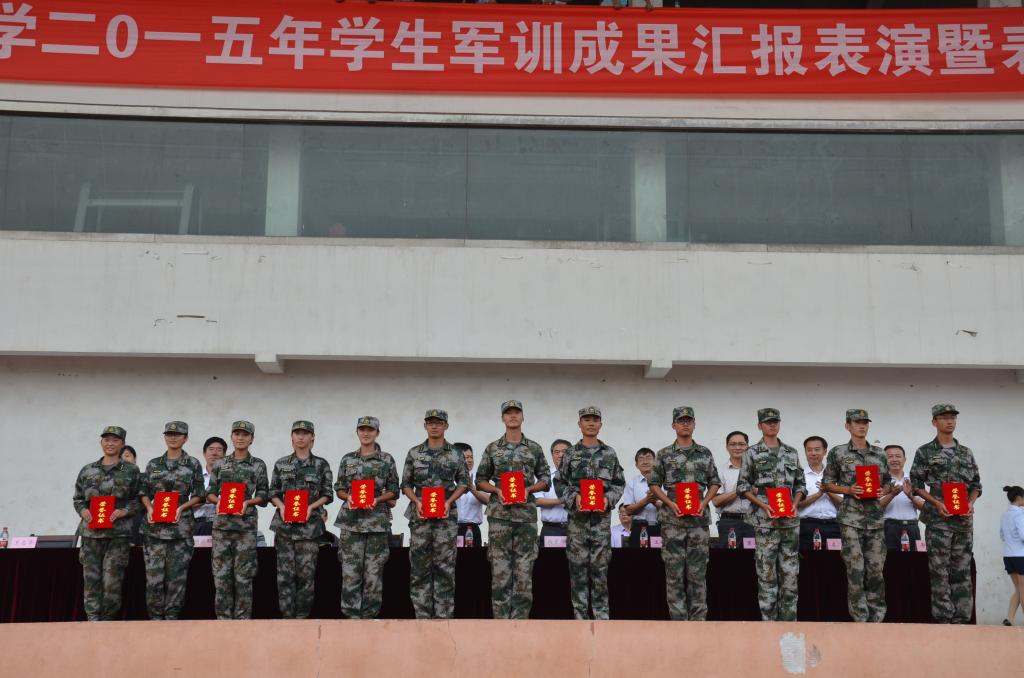 25日下午,我校2015级新生军训汇报表演暨总结表彰大会在南操场落幕。大乐透 在此次军训中表现优异,获得“军训先进单位”荣誉称号和内务整理优秀单位第一名,大乐透 部分教官和新生分别获得“优秀教官”和“优秀军训士兵”的称号。