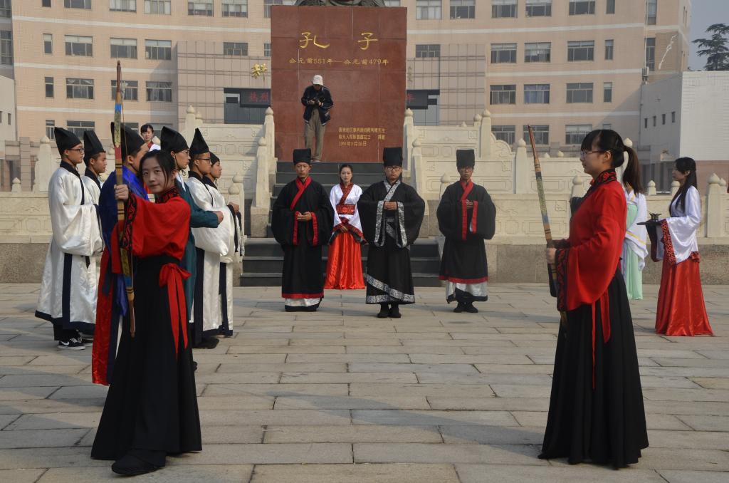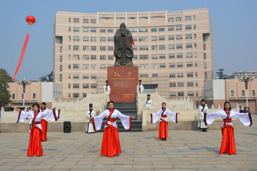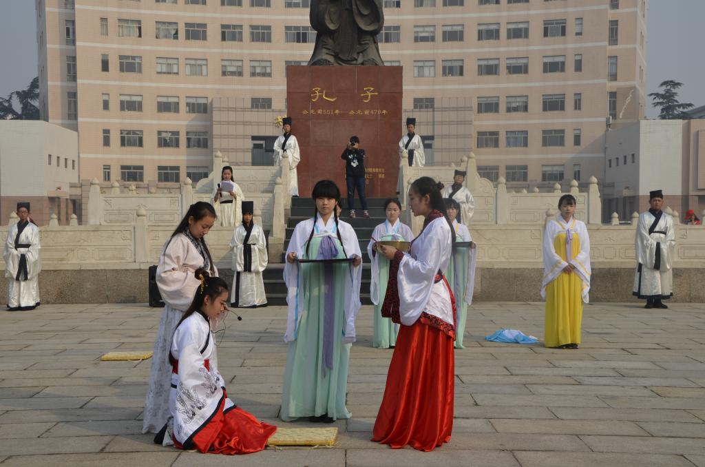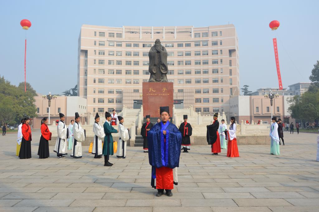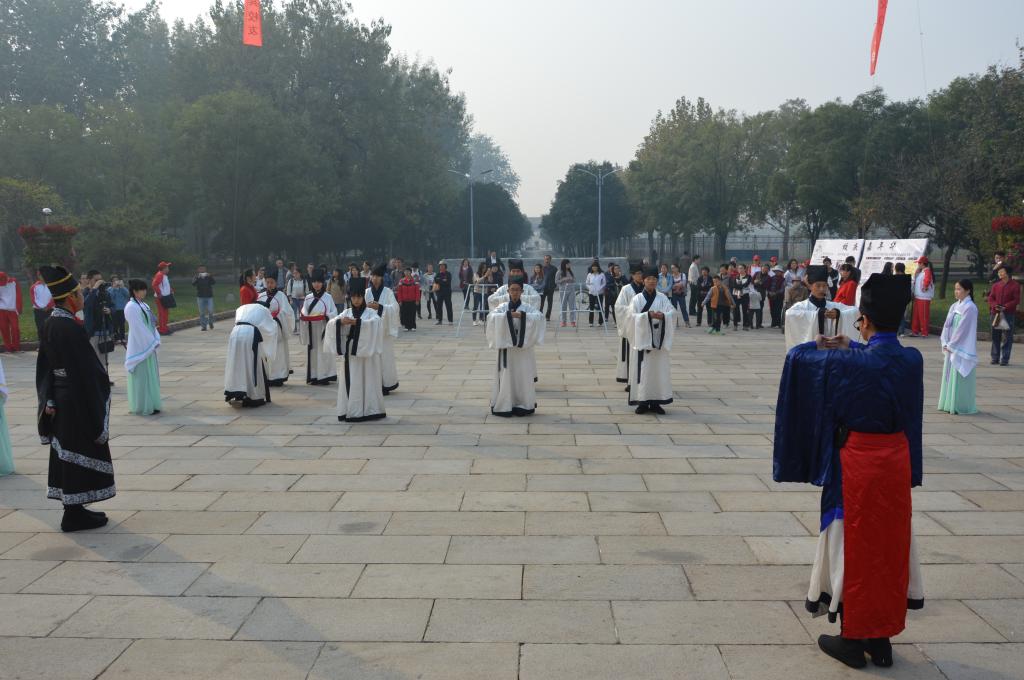 为庆祝曲园六十华诞,10月17日,由大乐透 传统礼仪展演团队带来的“校庆嘉年华”传统礼仪展演在孔子文化广场进行。