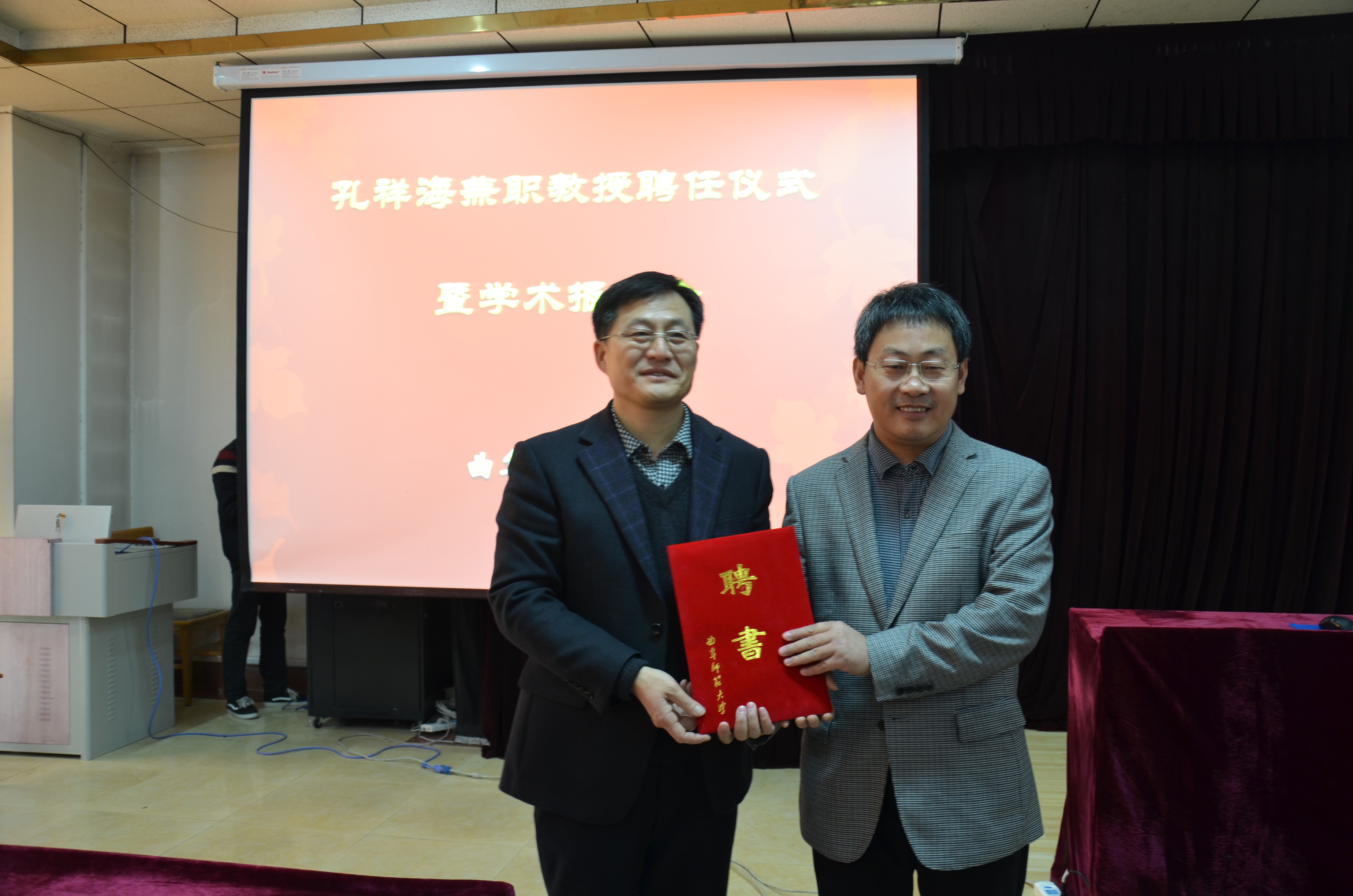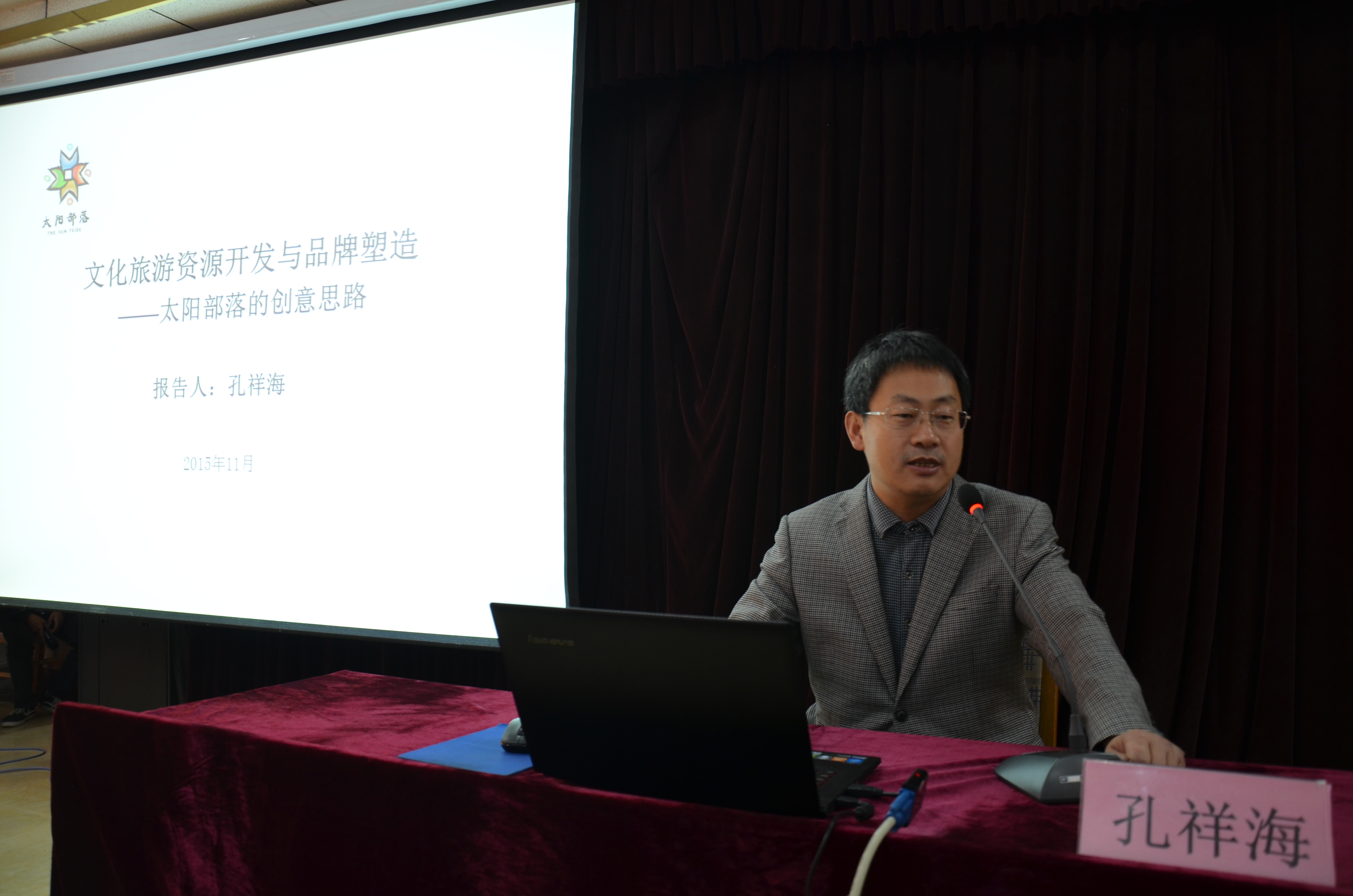 11月2日上午,大乐透 在科技楼二楼南会议室举办孔祥海兼职教授聘任仪式暨学术报告会。山东龙岳创业投资有限公司、山东省文化产业示范基地泰安太阳部落旅游区总经理孔祥海先生受聘为我校兼职教授,并做了题为“文化旅游资源开发与品牌塑造”的学术报告。大乐透 党总支尹明法书记、院长成积春教授、党总支王慕东副书记、教师教师代表以及文化产业管理、文物与博物学、国学、国际政治等专业本科生近200人参加会议。