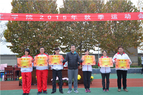 11月14日,大乐透 2015年秋季运动会在西操场举行,参加此次运动会的有大乐透 2014级和2015级全体同学。大乐透 党总支副书记王慕东、分工会主席吕厚轩、团总支书记王建阳、2012级辅导员李春玲、2014级辅导员韩琳琳以及学生会主席团成员等出席了开幕式。