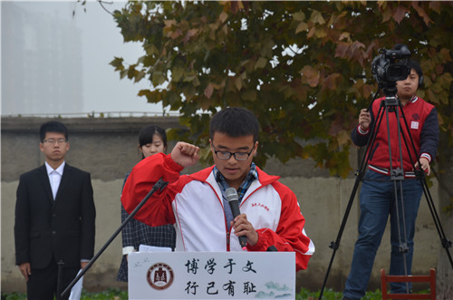 开幕式上,王慕东致开幕词,向参加此次运动会的运动员、裁判员,以及同学们表示感谢,并预祝此次运动会圆满成功。2014级李百金和2013级张美分别代表运动员和裁判员进行宣誓。2014级和2015级各班运动员方队依次经过主席台前,2015级新生带来的精彩的啦啦操表演赢得了在场观众的阵阵掌声。