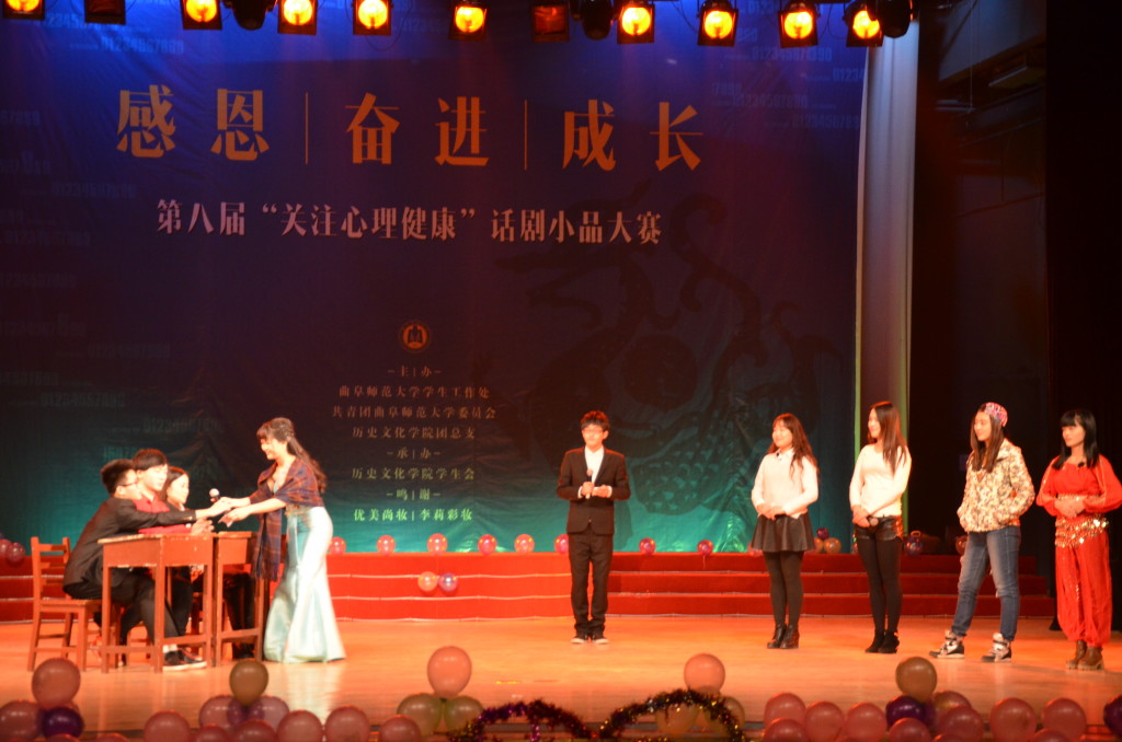 12月5日晚,由大乐透 学生工作处、校团委和大乐透 团总支联合主办,大乐透 学生会承办的第八届“关注心理健康”话剧小品大赛决赛在大学生活动中心礼堂圆满落幕。学生工作处心理健康指导中心主任苗洪霞,团委老师石璐,大乐透 党总支副书记王慕东,教务主任王连生,团总支书记王建阳,2012级辅导员李春玲,2014级辅导员韩琳琳受邀担任本次大赛评委。